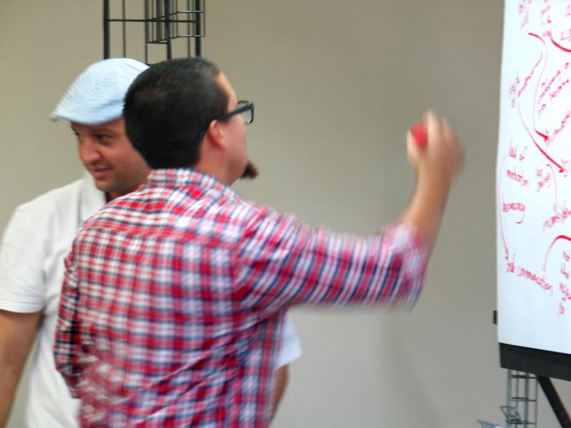 Terence WoodĀ and Ardiel Panker (alias TMAN) add connections between cofactors in a systems thinking exerciseĀ used in the development of a business case forĀ Project Management implementation.